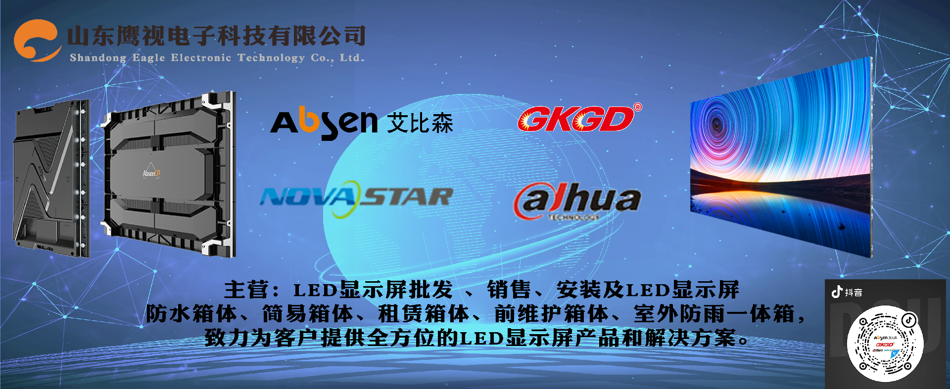 山東鷹視電子科技有限公司成立于2006年,是一家私營獨(dú)資企業(yè),注冊資本1000萬,代理品牌:艾比森、高科、諾瓦星云和大華,公司設(shè)立臨沂總部、濟(jì)南分公司、河北分公司和箱體生產(chǎn)廠。公司總部坐落在江北最大物流城,又是中國第二大批發(fā)市場山東臨沂,其地理位置優(yōu)越,交通便利,公司建筑面積5000多平方,員工80余人,擁有完善的售前,售后服務(wù)體系,公司業(yè)務(wù)遍及山東省內(nèi)各地級市。自有箱體生產(chǎn)廠,專業(yè)從事顯示屏箱體生產(chǎn),自產(chǎn)自銷,規(guī)格齊全,包括LED顯示屏防水箱體、簡易箱體、租賃箱體、前維護(hù)箱體、室外防雨一體箱,生產(chǎn)設(shè)計(jì)免焊易結(jié)構(gòu),使安裝更簡潔高效,致力為客戶提供全方位的LED顯示屏產(chǎn)品和解決方案。鷹視人員堅(jiān)守“誠信 感恩 負(fù)責(zé)任”的核心價(jià)值觀,秉承“謙卑 忠誠 協(xié)作 擔(dān)當(dāng) 積極主動 堅(jiān)韌不拔”的企業(yè)精神,始終以精誠團(tuán)結(jié)、追求卓越、為客戶提供優(yōu)質(zhì)產(chǎn)品和專業(yè)服務(wù)。 .